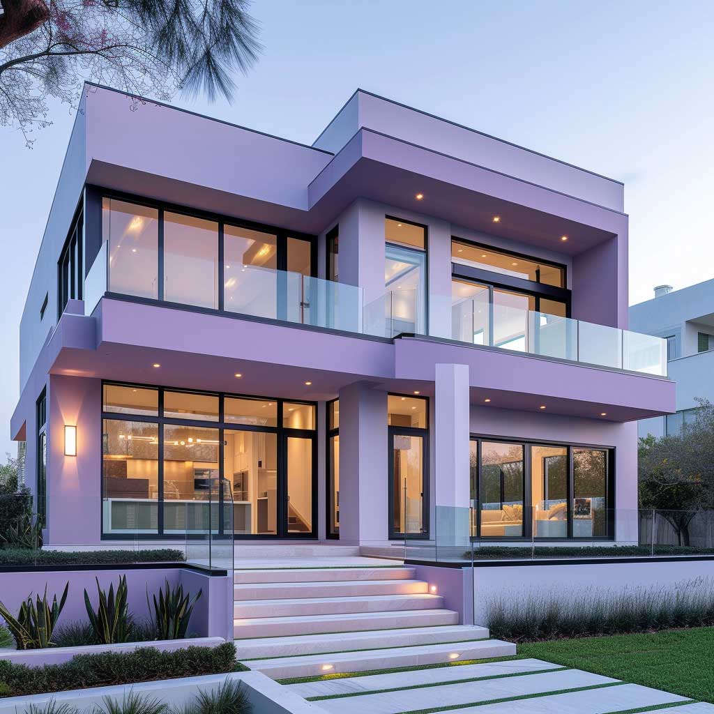 Choosing exterior house colours that reflect the ethos of modern minimalism is not just about making a visual statement. It’s about crafting an environment that supports well-being and mindfulness. Violet and frost, as a color combination, offer a unique opportunity to achieve this, providing a peaceful and elegant exterior that complements the minimalist lifestyle.