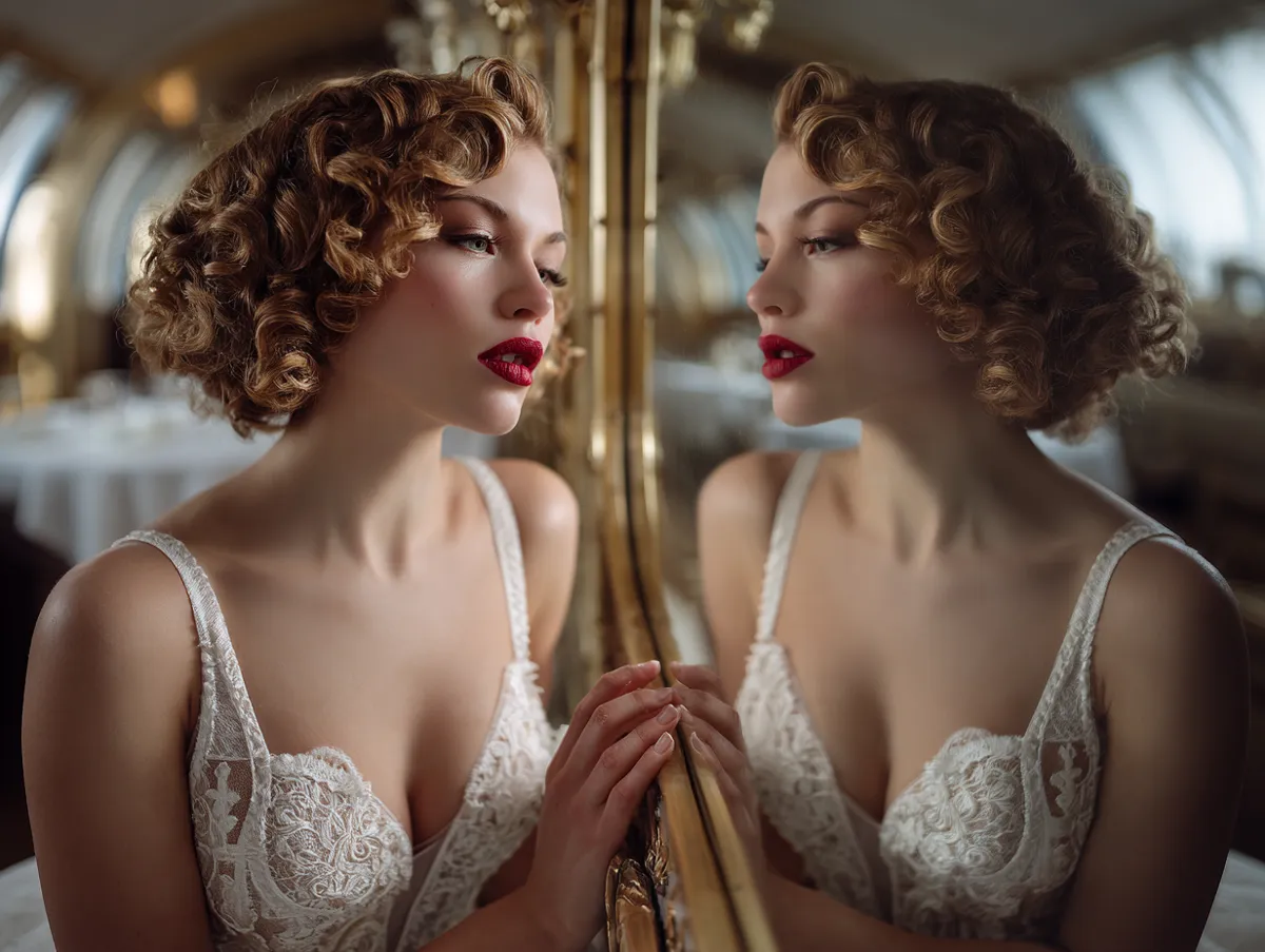 The charm of this look lies in its structure. Unlike modern messy curls, these are deliberate, flowing patterns that follow the contour of the face. The texture enhances the natural shape of short hair, adding body and rhythm. It’s a design that suits various hair colors — from platinum blonde to deep brunette — as light plays beautifully across the curls.