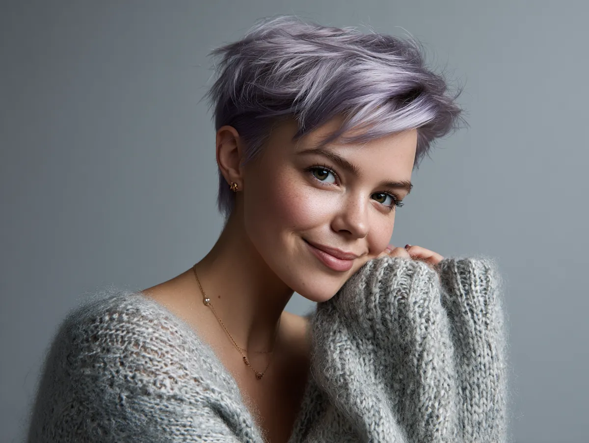 A pixie cut has long been a favorite choice for women seeking freshness, energy, and style simplicity. When crafted thoughtfully, it becomes an exceptional choice for those with fuller features. The secret lies in how the layers interact with the silhouette of the face. Shorter strands near the crown elongate proportions, while tapered sides draw attention upward instead of toward the neckline. In soft lavender, this effect gains an unexpected magic — a playful tone that diffuses visual heaviness and gives skin a cooler, luminous glow.