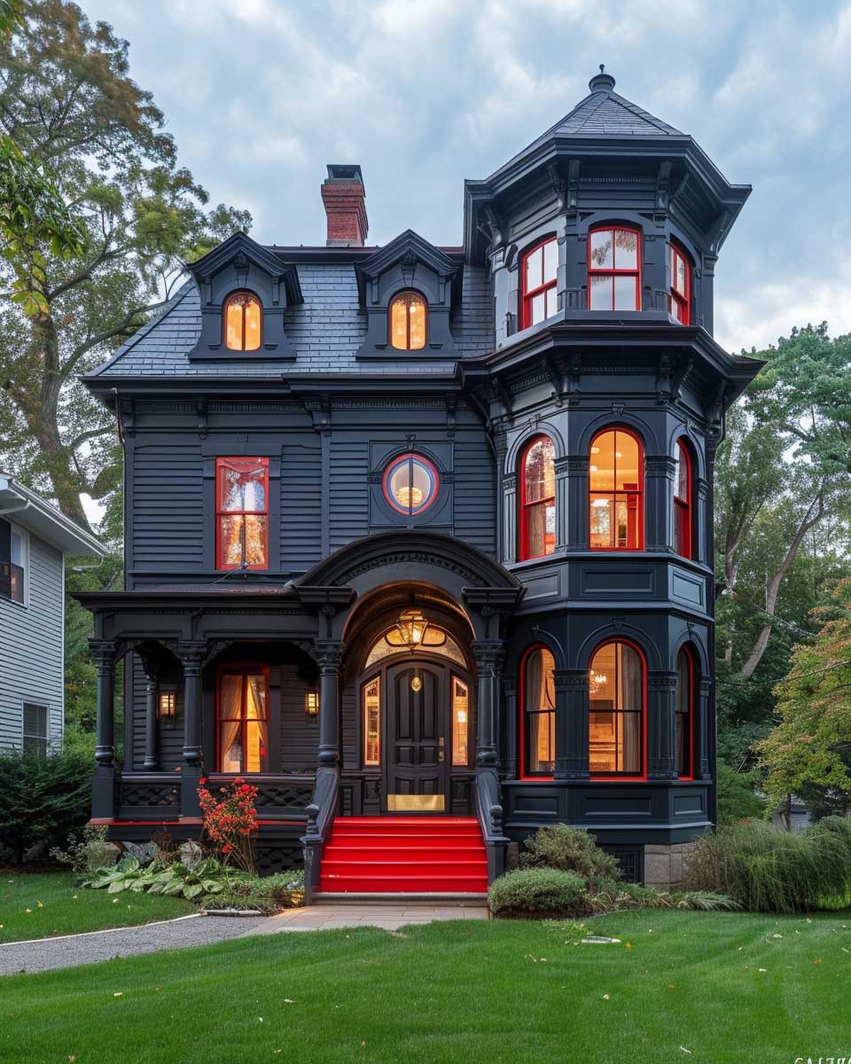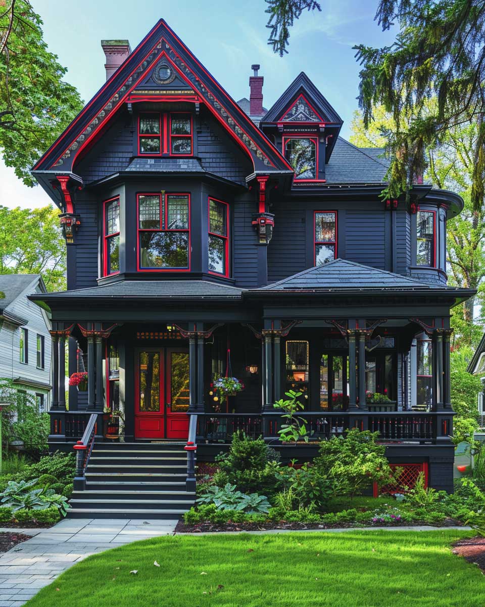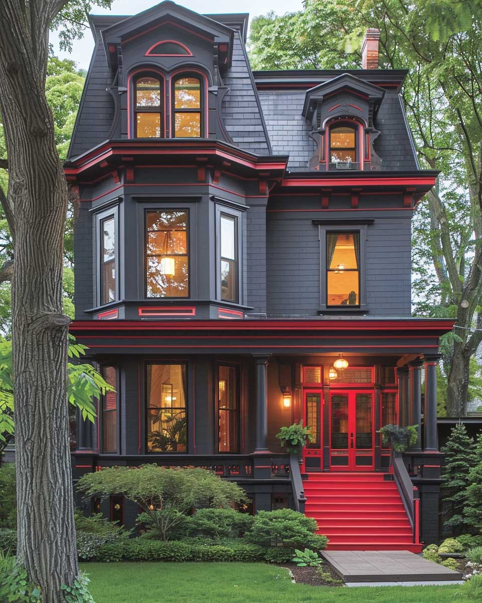 This color scheme is not merely about aesthetics; it’s a reflection of a broader trend towards blending tradition with innovation. Homeowners and designers alike are increasingly drawn to the idea of maintaining the historical essence of their properties while embracing modernity through color. The charcoal gray and intense red combination exemplifies this approach, offering a fresh perspective on Victorian architecture that is both respectful of its origins and forward-looking in its execution.