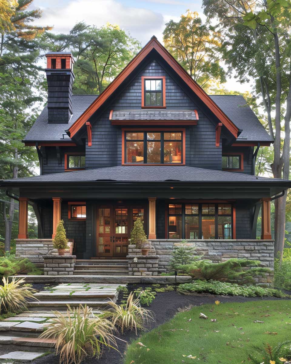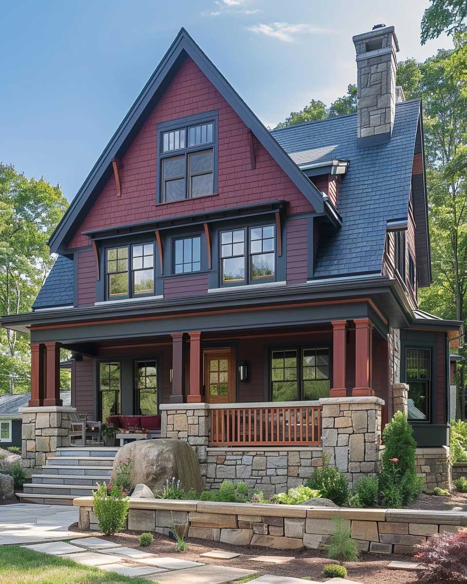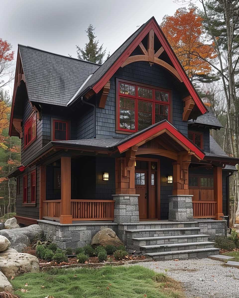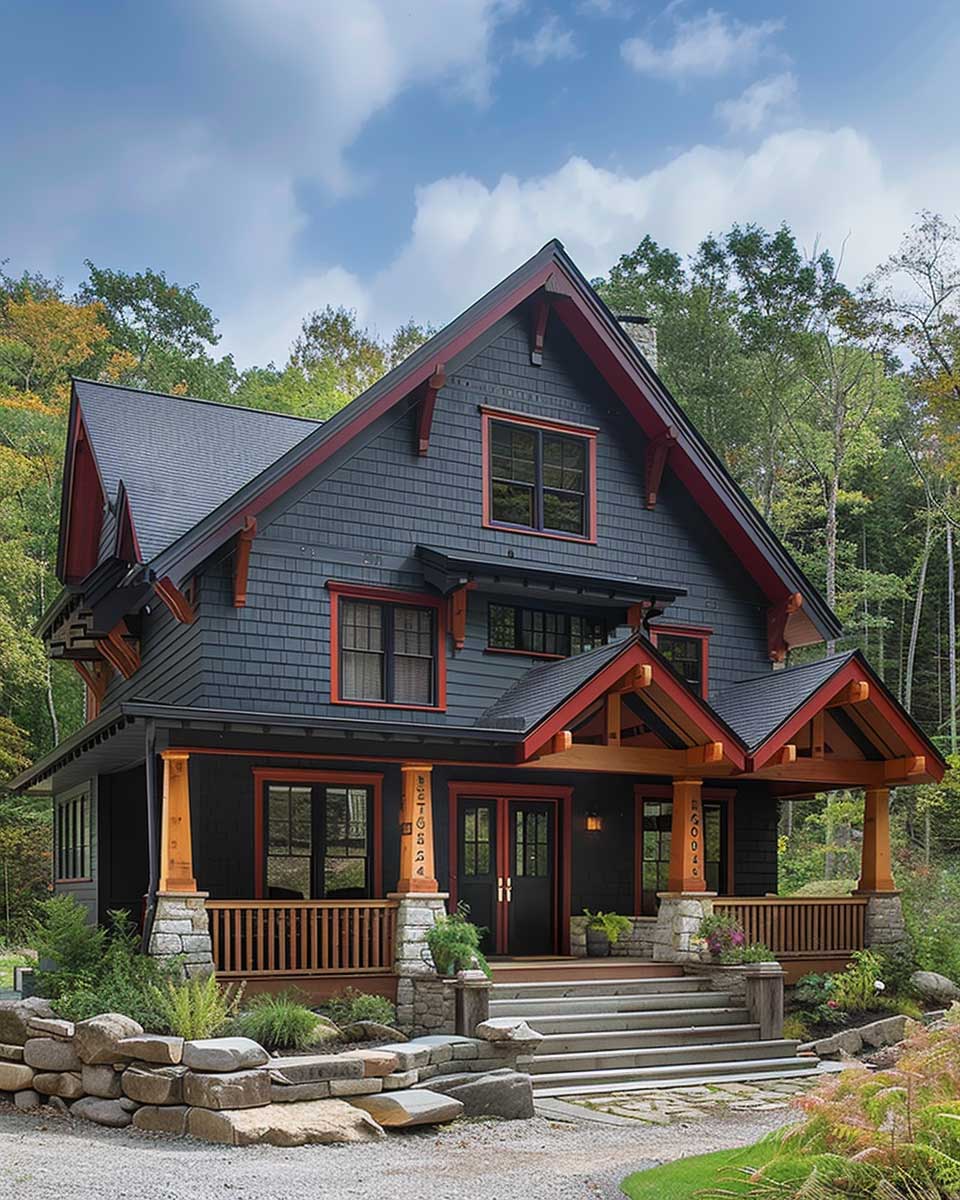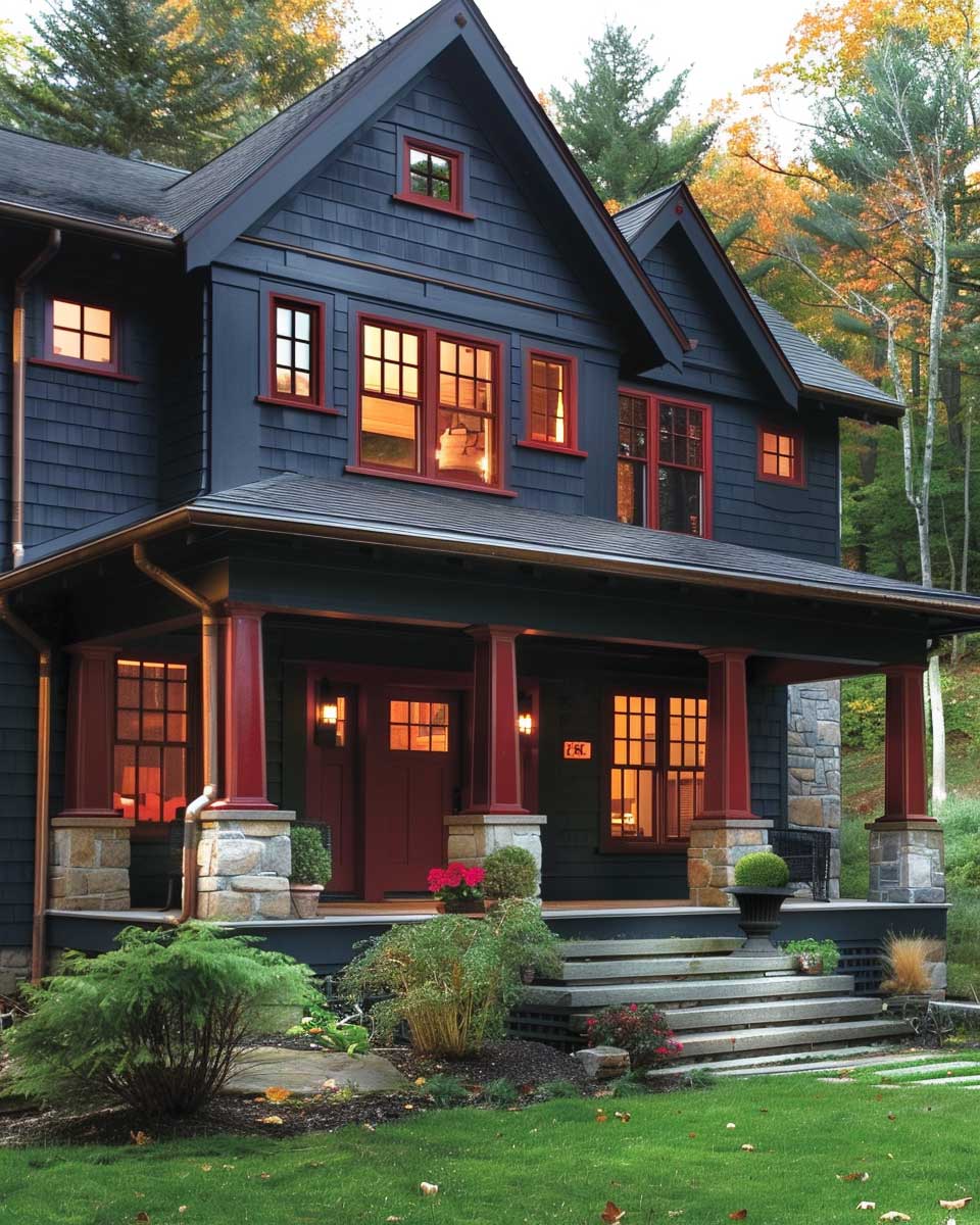 This modern interpretation of Craftsman style, through the use of charcoal gray and intense red, serves as a compelling example of how thoughtful color selection can rejuvenate classic designs. It underscores the potential for color to not only beautify but also to convey a home’s unique character and the values of those who dwell within. By embracing such a distinctive palette, homeowners can create spaces that are not only architecturally coherent but also deeply personal.