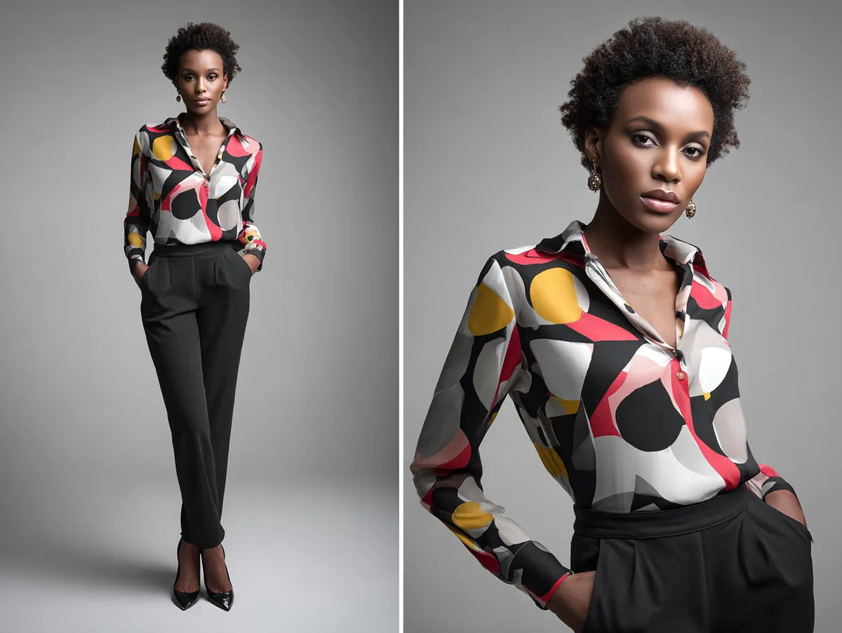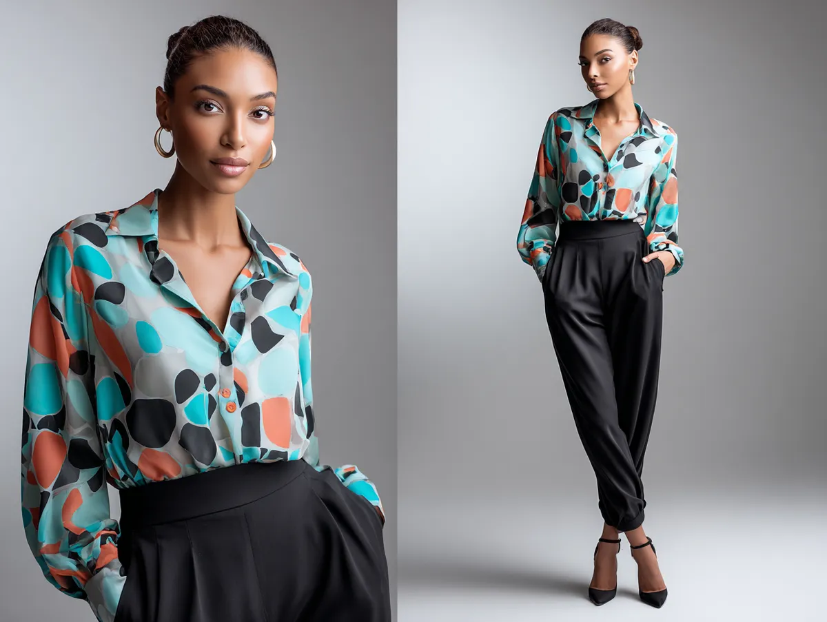 Street style fashion further emphasizes this pairing. Photographers often capture fashion-forward individuals pairing graphic blouses with fitted pants to create clean but expressive compositions. The versatility extends to footwear as well. Sneakers give the outfit a youthful, relaxed vibe, while pointed heels or boots elevate it for more formal settings.