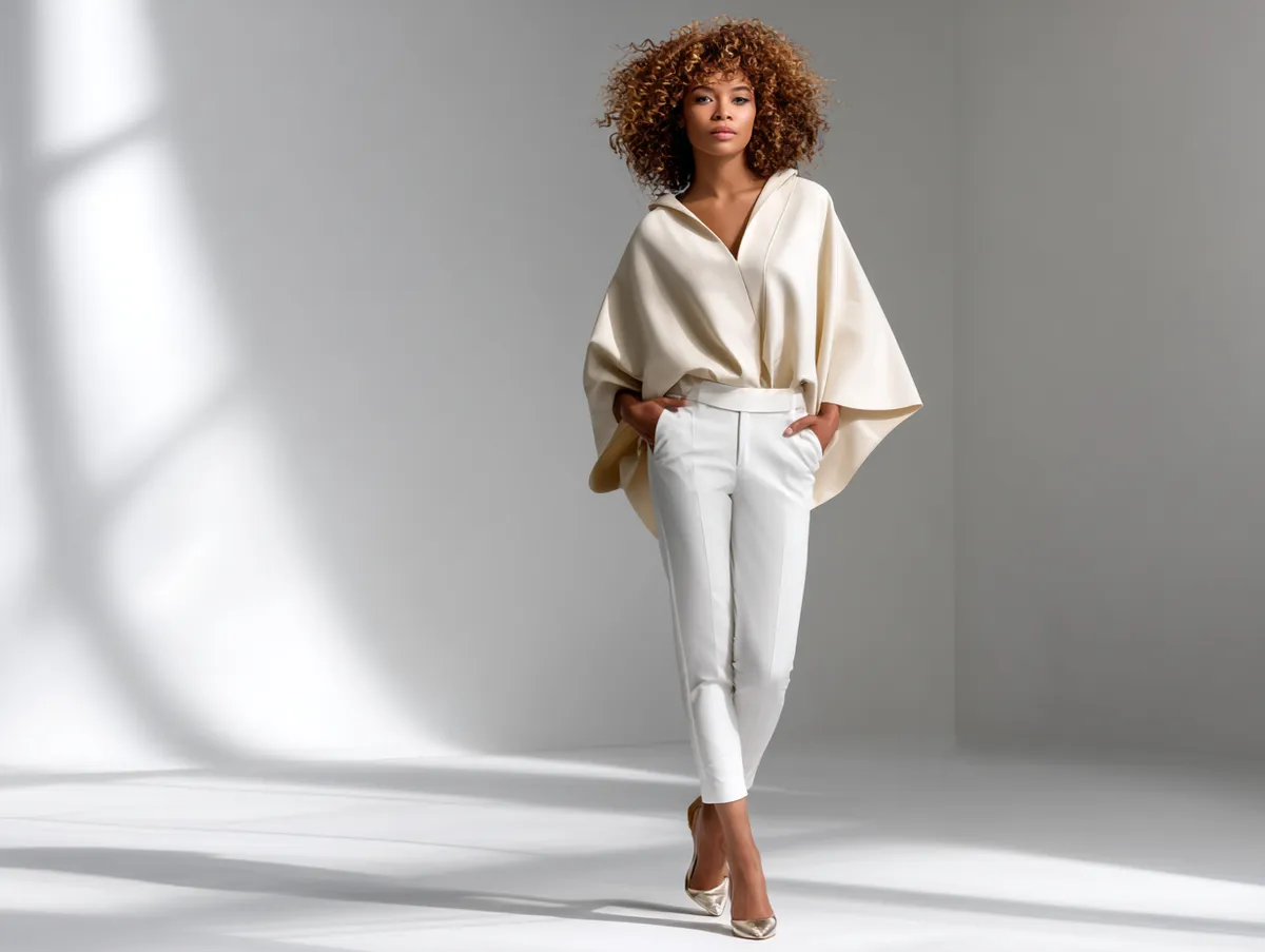 One of the benefits of combining slim trousers with bold, oversized tops is the room it gives for accessories and movement. A wide belt cinched at the waist can define shape, while leaving the oversized silhouette intact. Chunky necklaces or statement earrings reinforce the drama above the waist, while neutral shoes ground the entire outfit. Trouser outfit ideas in this style also work well across seasons. Lighter oversized tops in breathable fabrics are perfect for summer evenings, while heavy knits and structured coats carry the look into colder months.