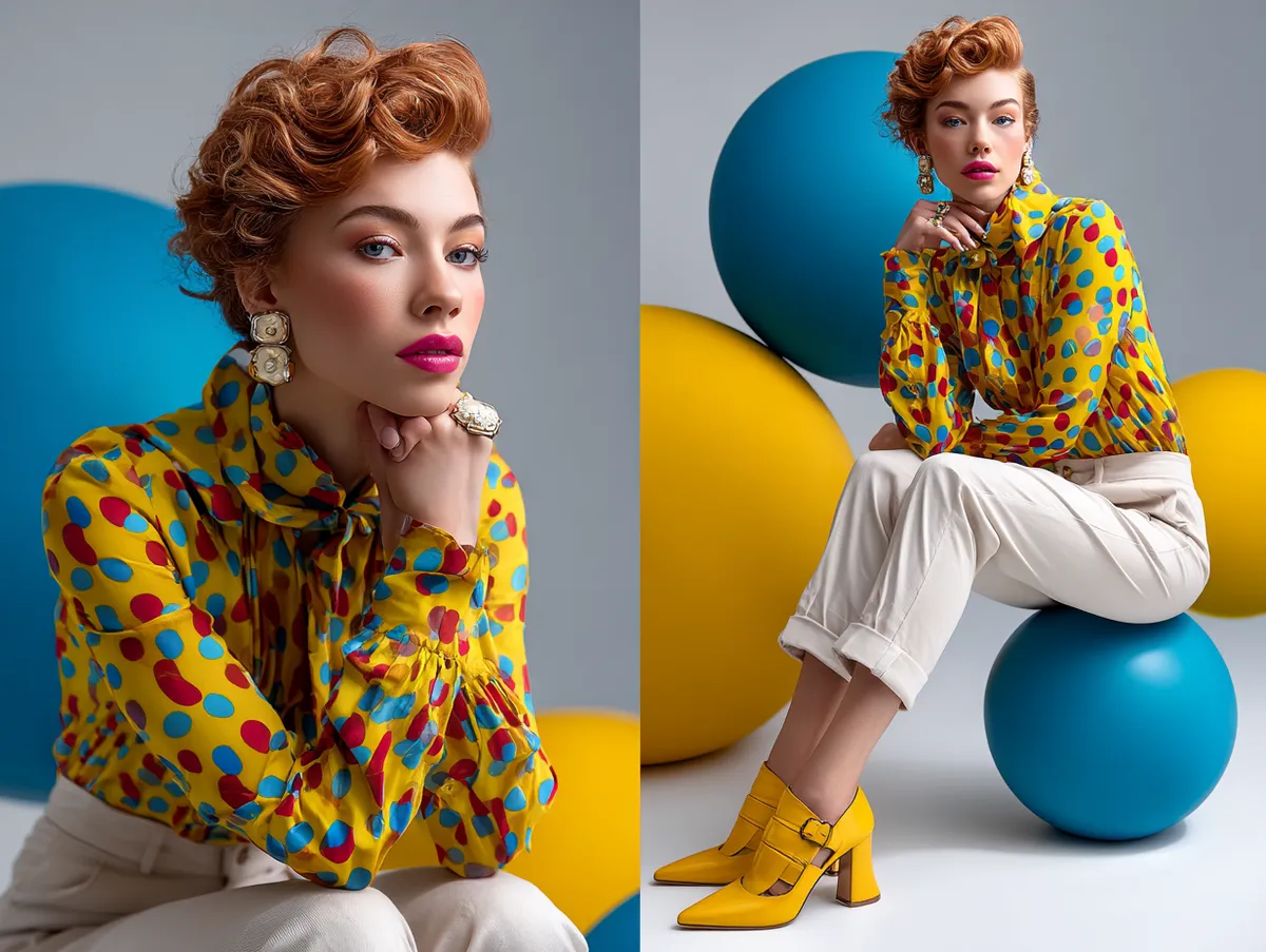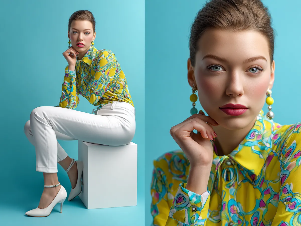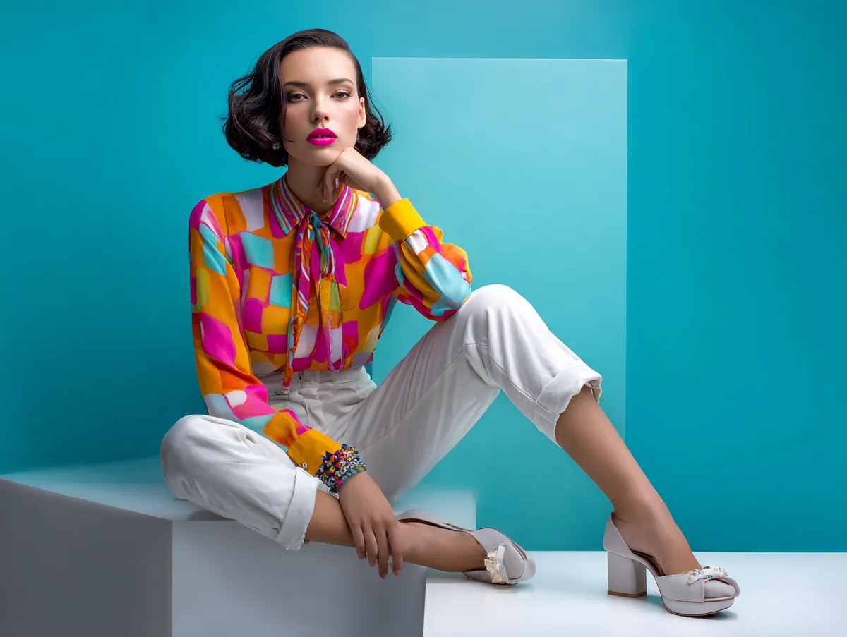Patterns within bright tops add another layer. Florals, abstract splashes, or bold stripes in high-saturation hues make an even stronger statement. Slim trousers help prevent such tops from becoming overwhelming, keeping the focus on intentional styling rather than excess.