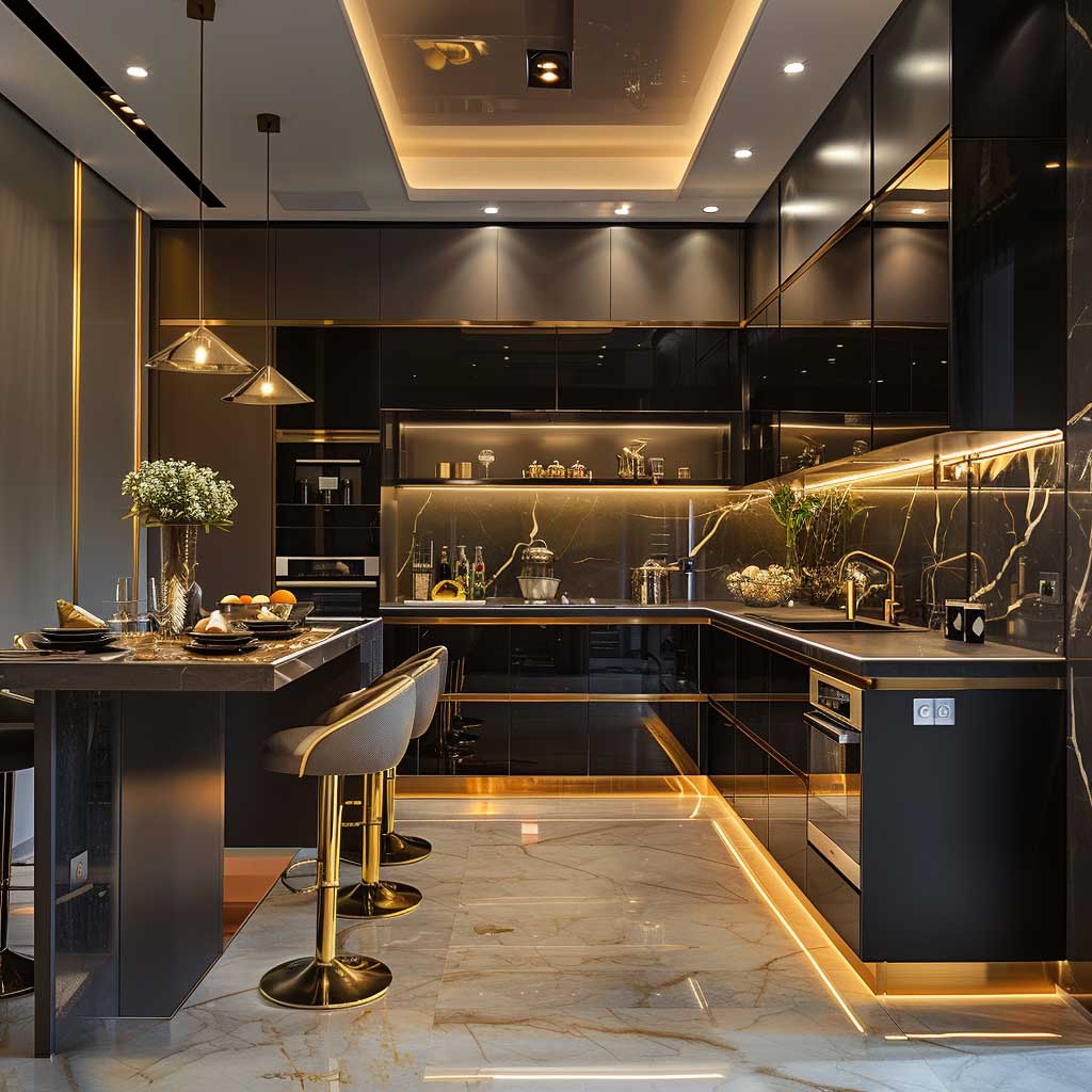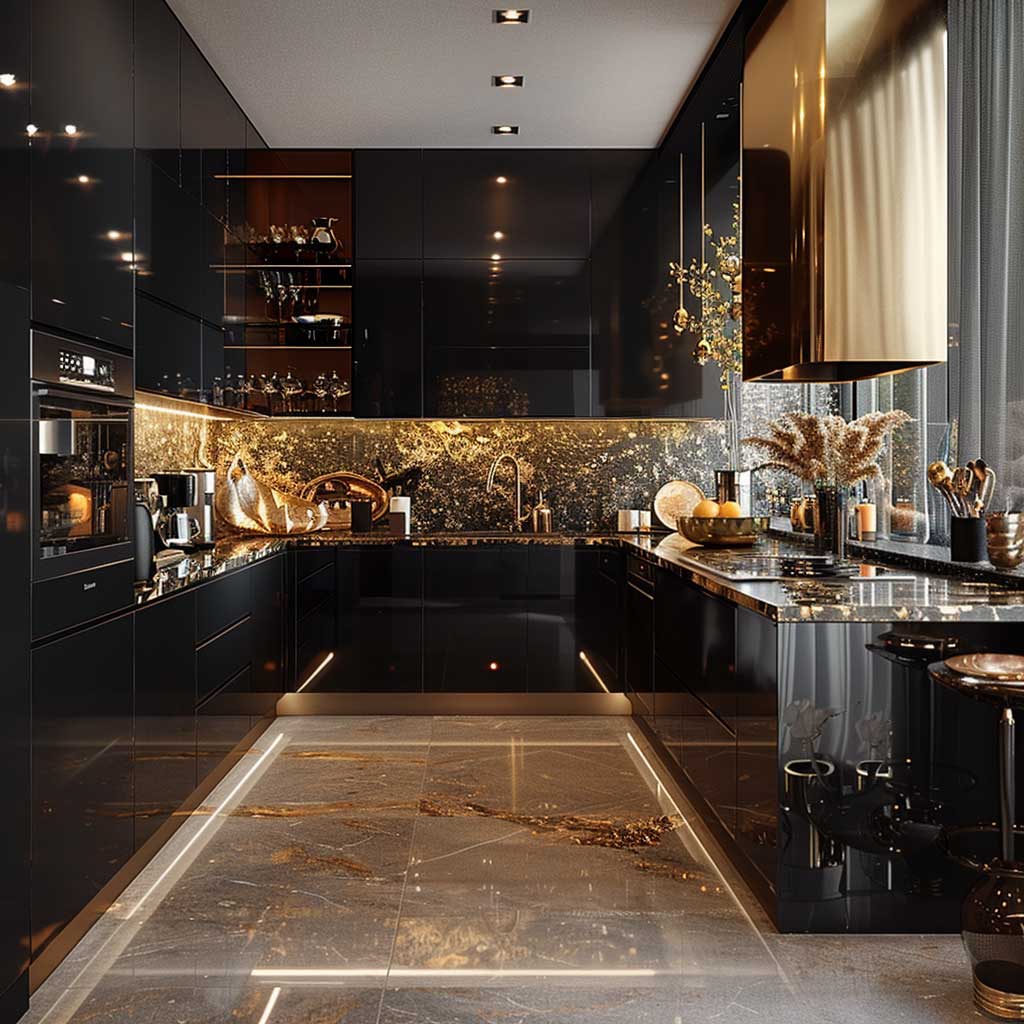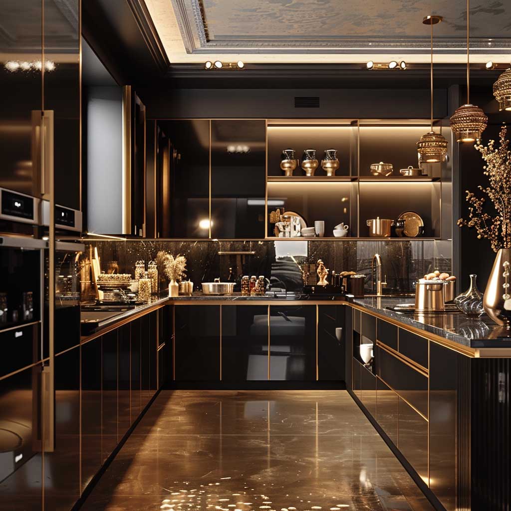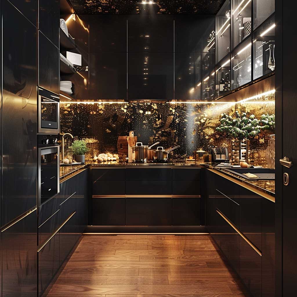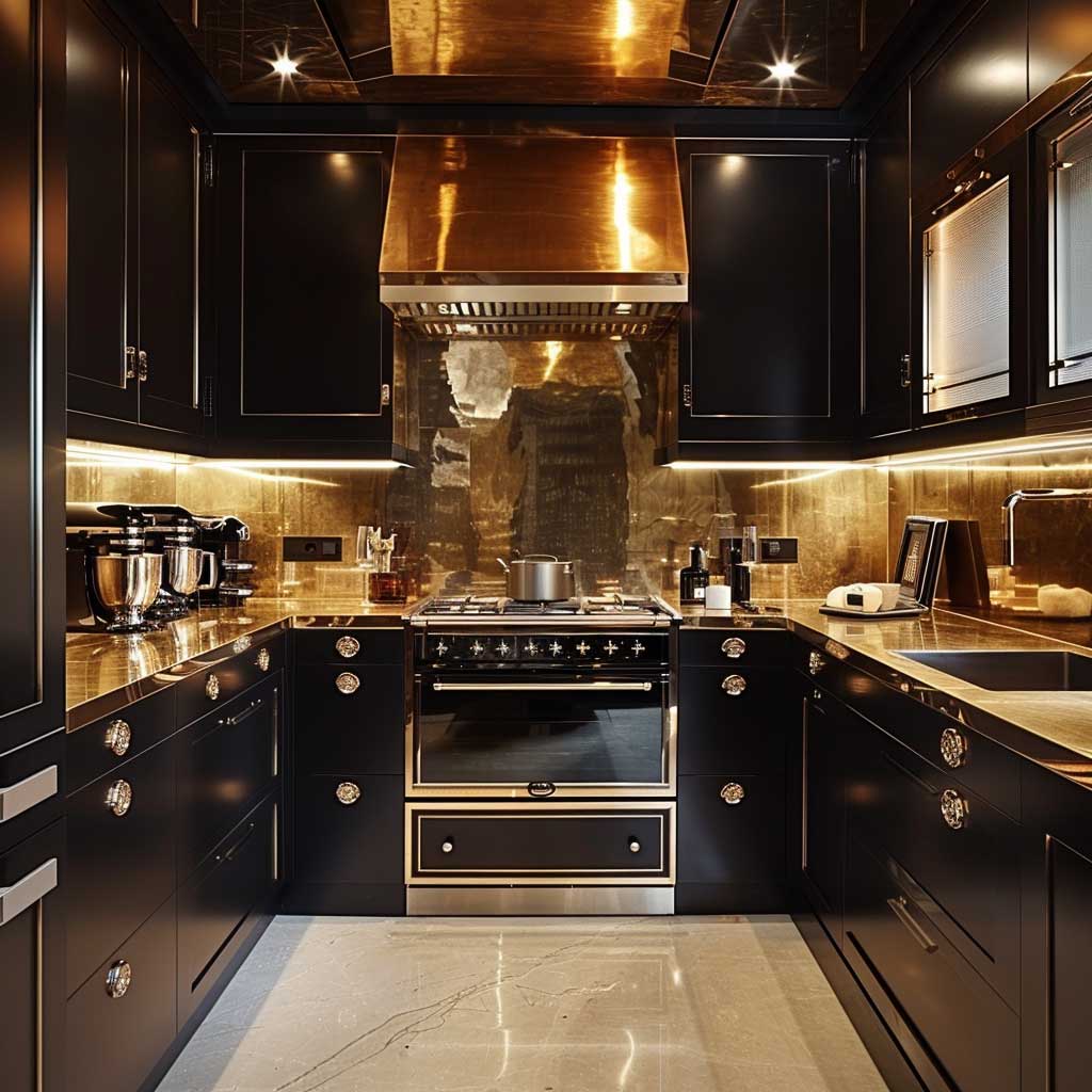 Elegant Black and Gold Small Kitchen Decorating Ideas