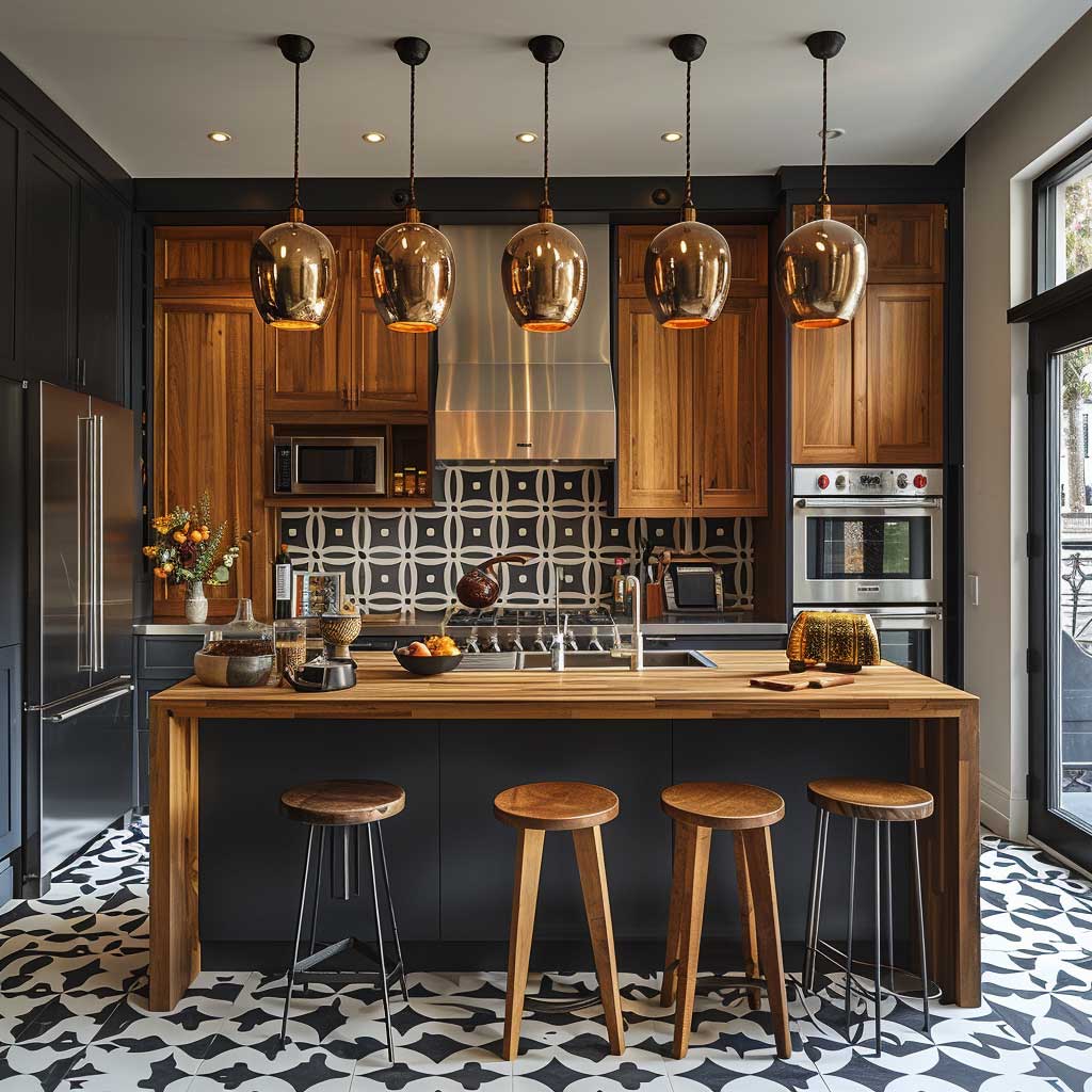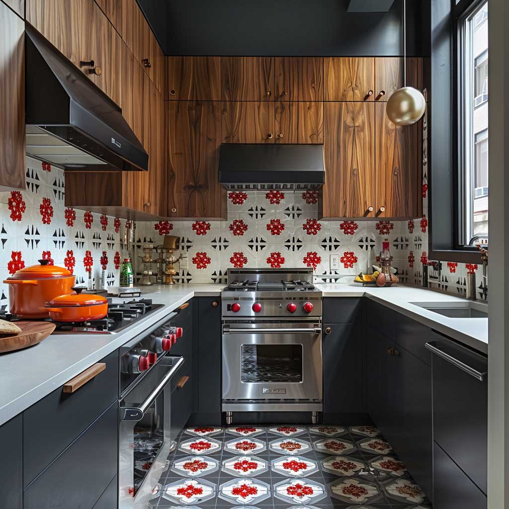 Chic Compact Kitchen Decorating Ideas with Bold Geometric Patterns