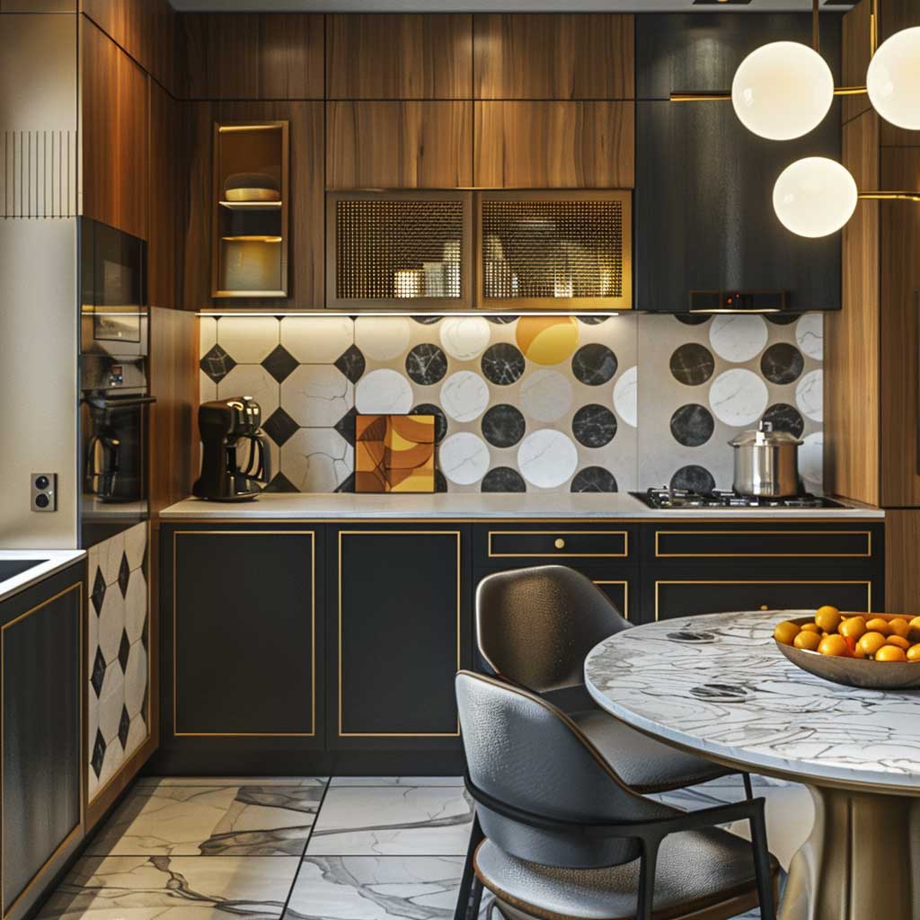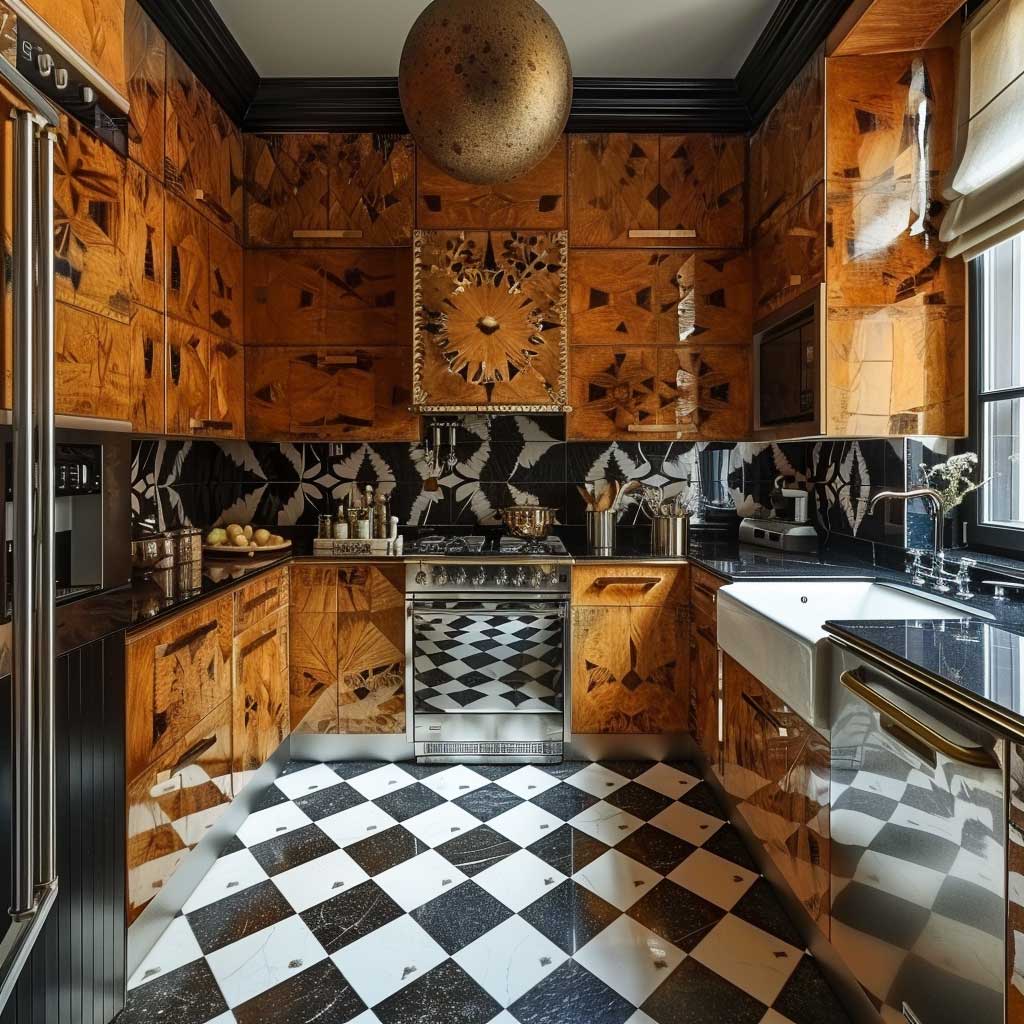 Bold geometric patterns characterize Art Deco design, and their usage in a small kitchen only goes to give life to the place, making it something good to behold. The patterns help energize and make the kitchen feel more sophisticated.