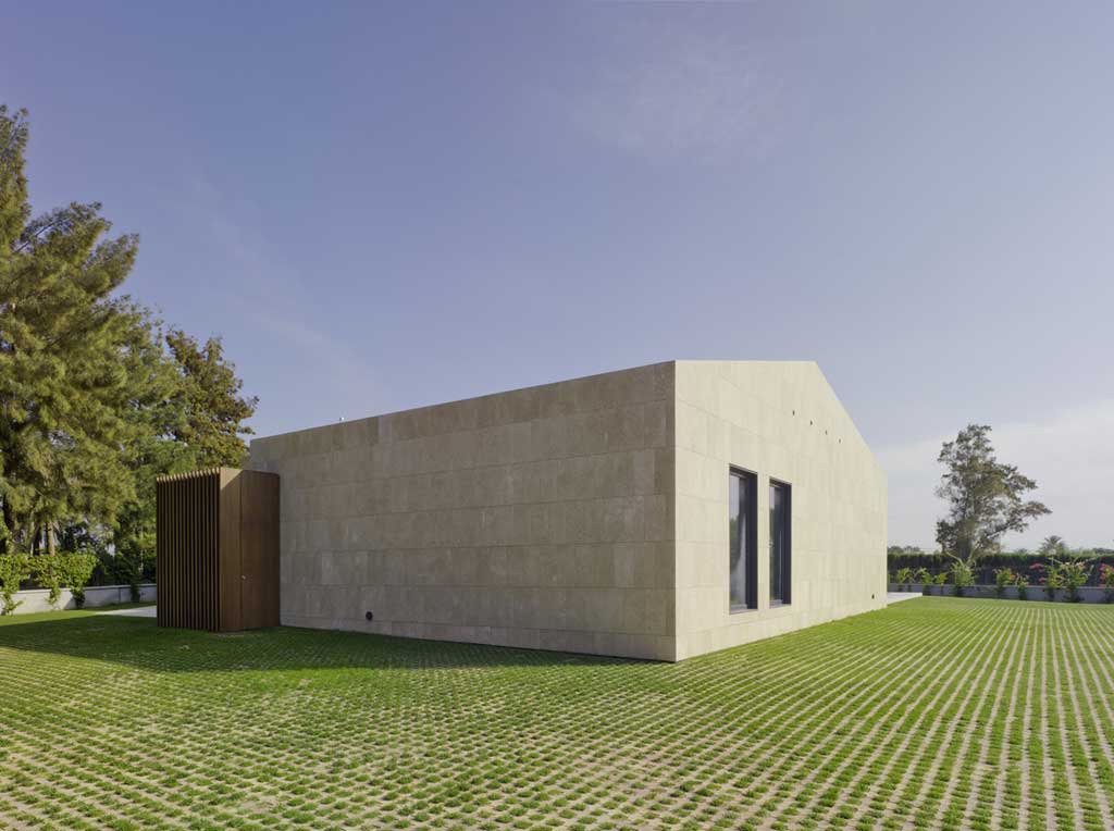 Inside the residence, the gabled design translates to high ceilings and spacious interiors. The play of light and shadow that the roof allows creates dynamic patterns throughout the day, adding an ever-changing artistic element to the living spaces.