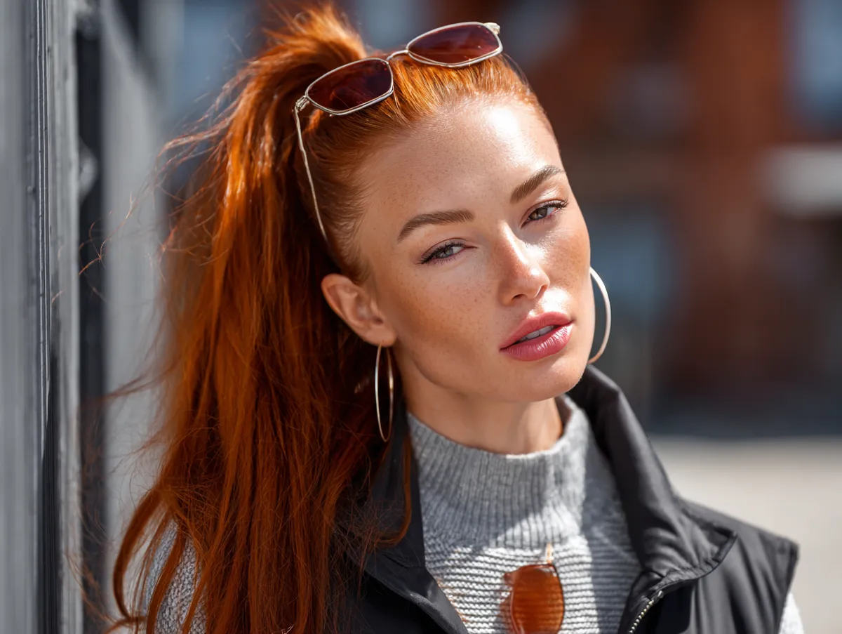 One of the best parts of this look is its versatility. It works in casual moments like errands and gym sessions, but it also adapts beautifully to professional settings or evenings out. The bright red shade adds drama, ensuring that the ponytail is anything but ordinary. Greasy hairstyles built around high ponytails show that long hair can feel both practical and glamorous with very little effort.