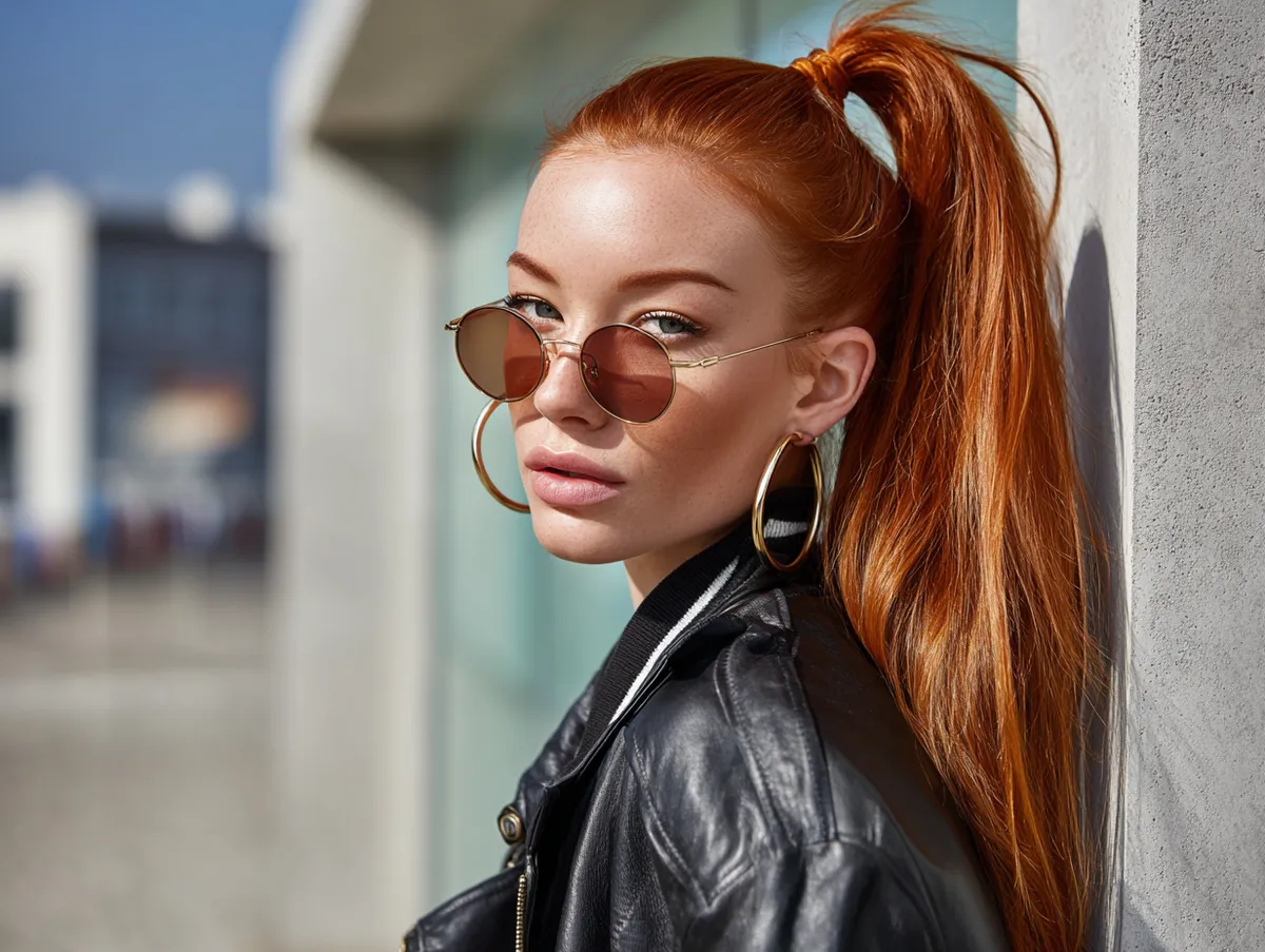 This hairstyle also has a lifting effect on facial features. By pulling hair upward, it highlights cheekbones and elongates the neck. The combination of vibrant red and sleek styling creates a powerful presence that draws attention without seeming overdone. Greasy hairstyles like the high ponytail show that shine can serve as an ally, not a problem, especially when balanced with bold color.
