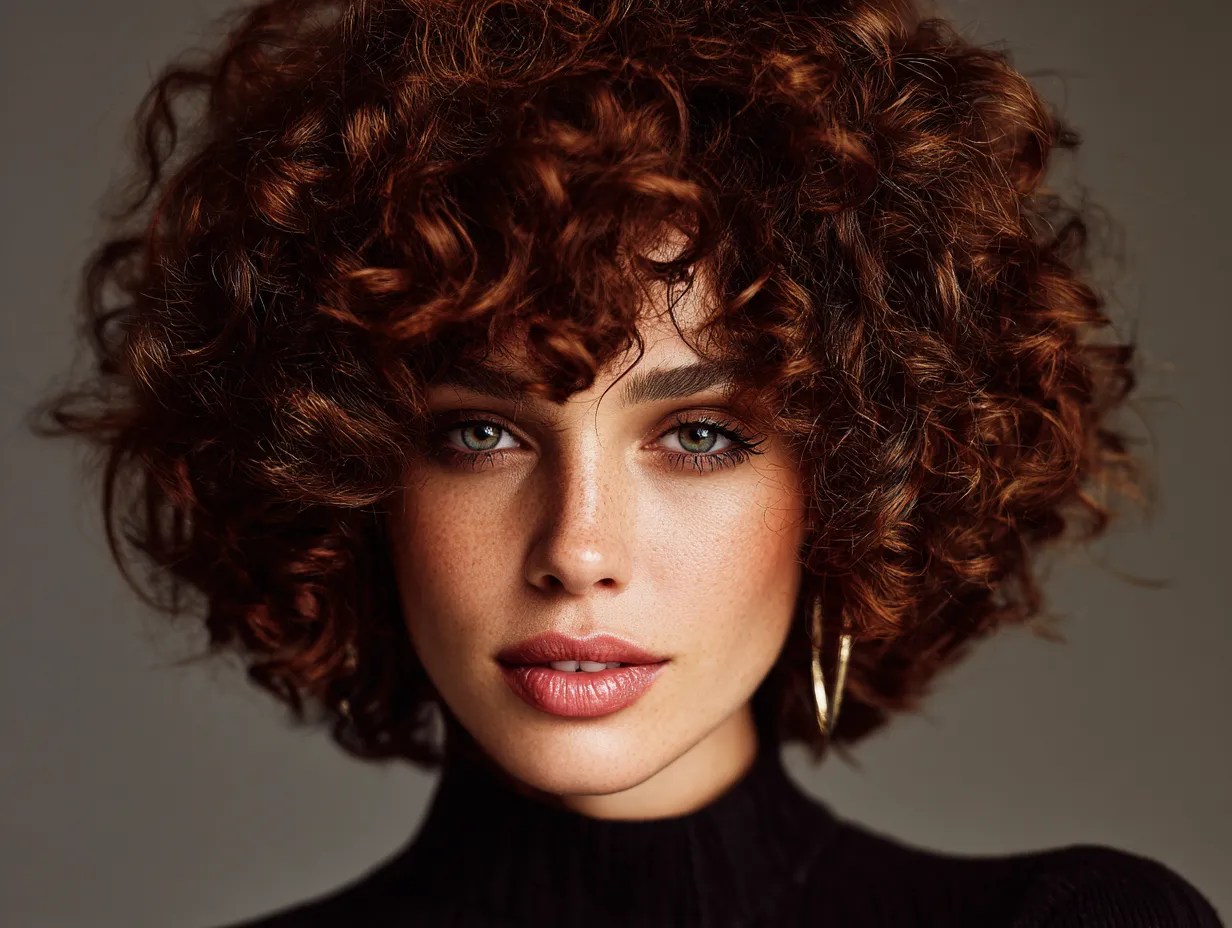Whether worn with a center or side part, this cut brings structure to even the most unruly textures. It also lends itself beautifully to creative color play. Blonde tips, copper undertones, or even a two-tone contrast can elevate the blunt edge while keeping attention on the curl formation.