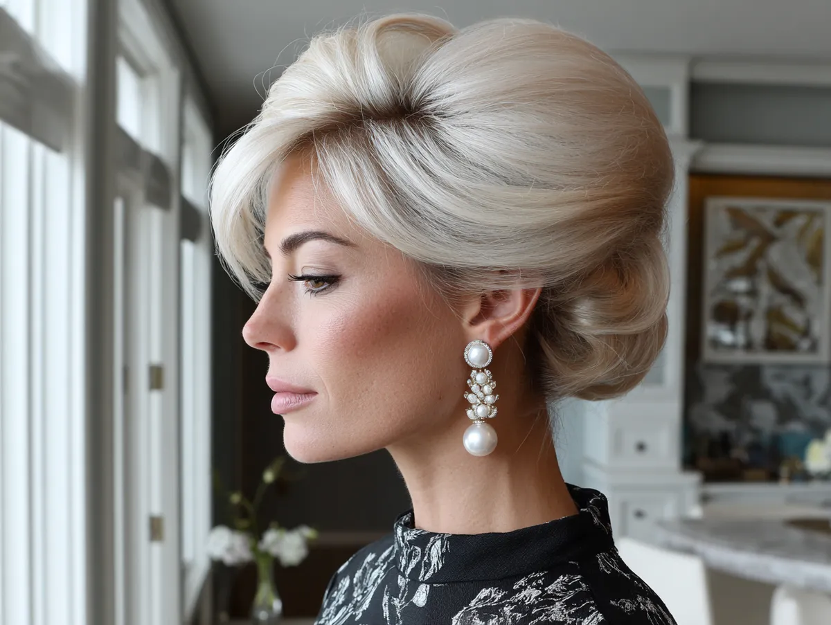 The key to mastering this look is balance. While volume is important, the finish should remain soft and polished rather than stiff. Leaving a few loose strands around the face helps soften the overall appearance, giving the hairstyle a modern touch. Accessories such as pearl combs or subtle metallic pins complement platinum blonde shades beautifully. The cool tones of the hair emphasize the elegance of the bouffant while preventing it from appearing too dramatic.