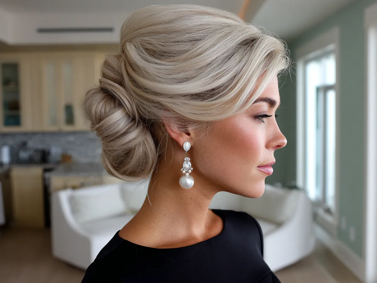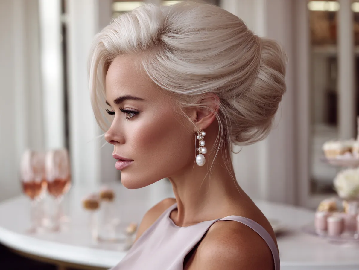 Bouffant updos for medium hair in platinum blonde work well for formal occasions like weddings, evening receptions, or even photoshoots. The brightness of the hair enhances facial features and draws attention upward, making it particularly flattering for many face shapes. For daytime events, this style can be simplified with minimal accessories, while evening occasions can be enhanced with sparkling pins or headbands.