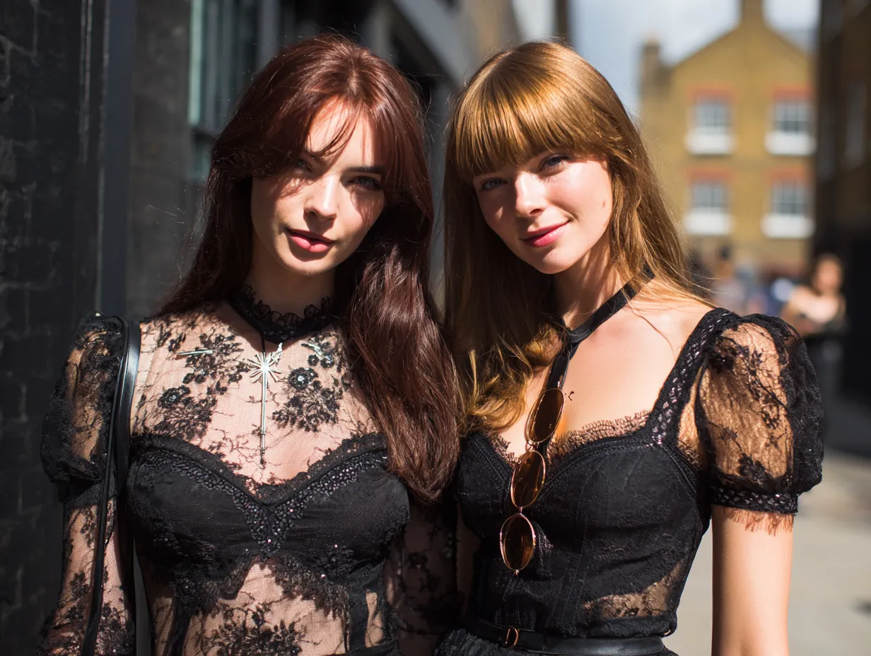 Texture mixing plays a crucial role in grounding these airy pieces. Because sheer lace is inherently lightweight and visually delicate, pairing it with heavier, more substantial fabrics creates a visually arresting and balanced outfit. Imagine pairing a delicate, transparent long-sleeve top with high-waisted, rigid vintage denim or heavy leather trousers. The ruggedness of the denim or the slick edge of the leather removes any overly precious or purely romantic connotations from the delicate fabric, giving it a modern, urban edge. This contrast makes the sheer lace feel much more approachable for everyday wear. The heavy bottoms anchor the outfit, drawing the eye downward and ensuring that the transparency on top does not overwhelm the entire silhouette.