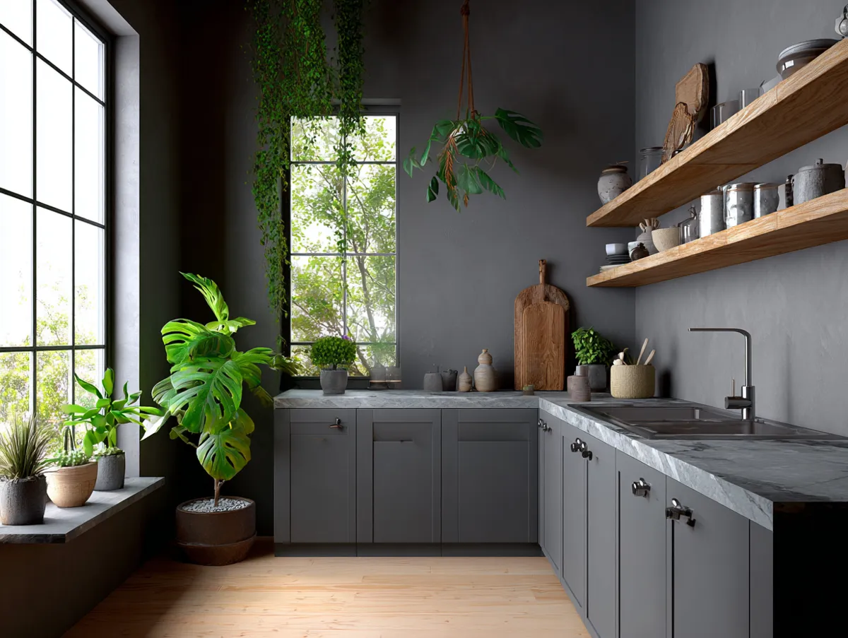 Furthermore, the inclusion of nature in modern grey kitchen designs is not just about aesthetics; it’s also about creating a healthier and more sustainable living environment. Plants, for instance, are known to purify the air, reduce stress, and improve overall well-being. Wooden elements, on the other hand, are sustainable and eco-friendly, making them a perfect choice for the environmentally conscious homeowner.