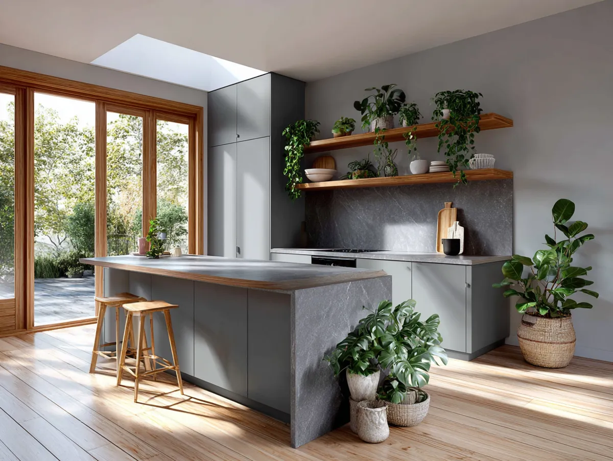 In the vast spectrum of interior design, the kitchen stands as a testament to a family’s lifestyle, preferences, and daily routines. Modern grey kitchen designs have emerged as a popular trend, reflecting a blend of sophistication, modernity, and versatility. But what truly elevates this design is the incorporation of natural elements, creating a harmonious balance between the man-made and the organic.