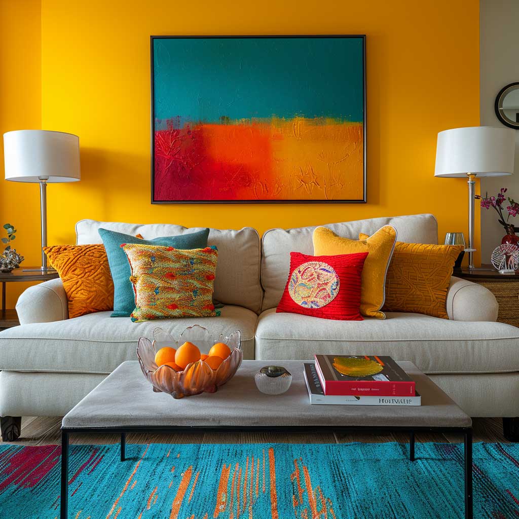 Vibrant Energy with Asian Paint Color Combination for Living Room