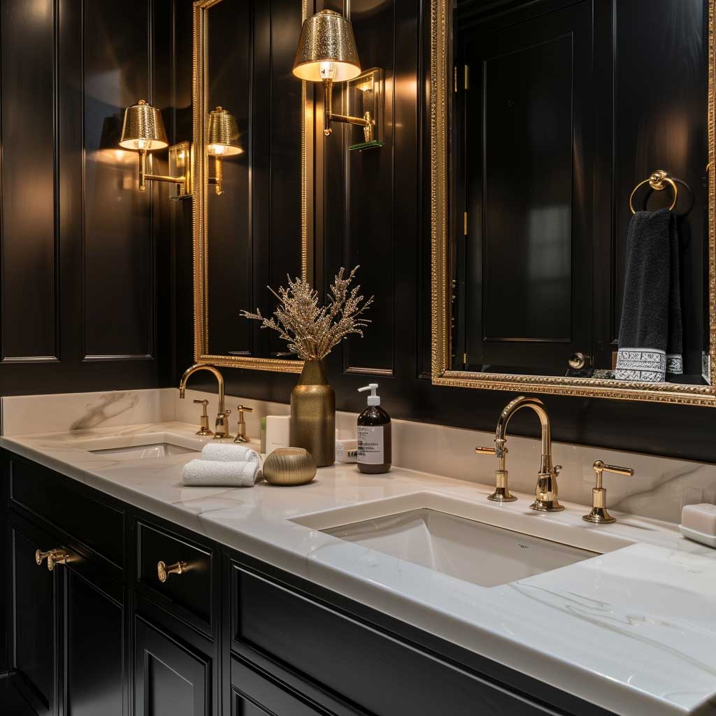 Timeless Elegance in Bathroom Paint Ideas Featuring Gold Details on Black