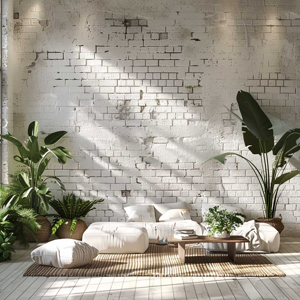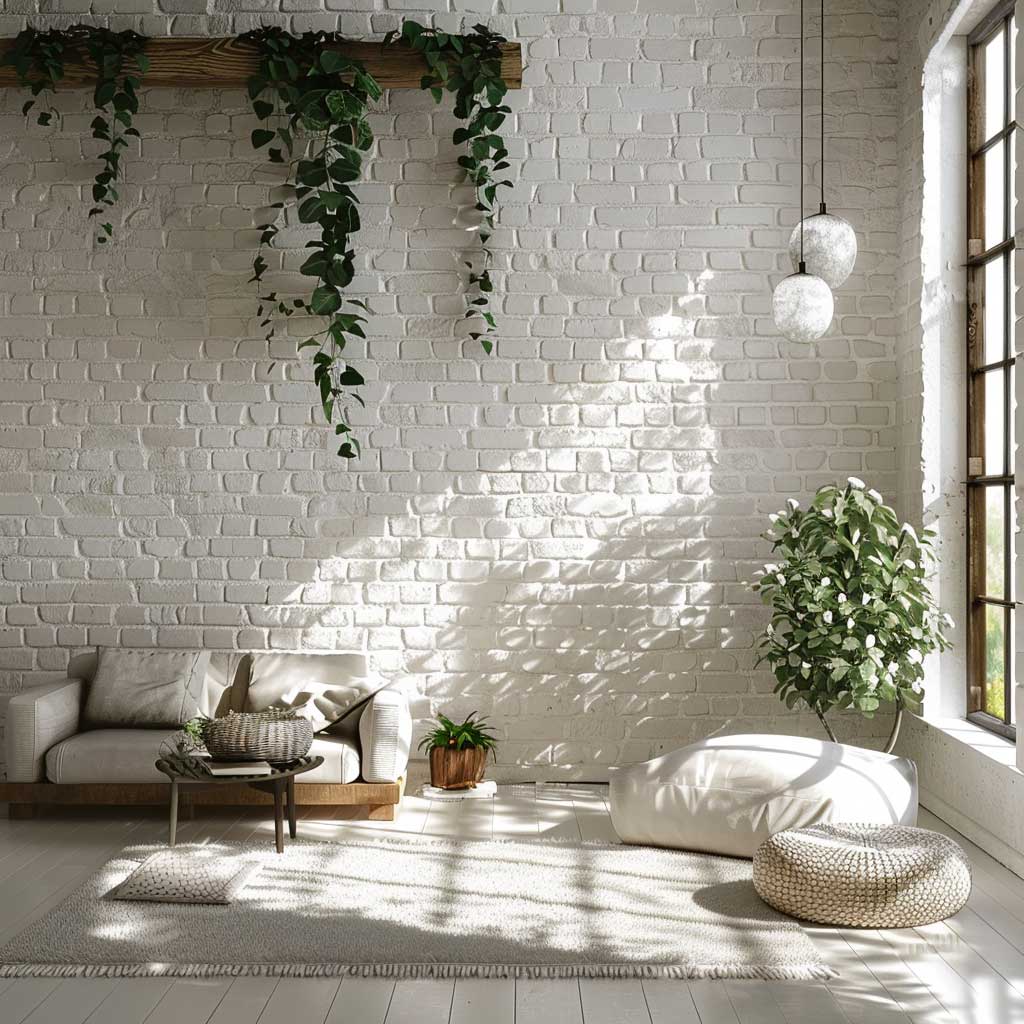 The big, green plants are in contrast to the light, plain background, and the light from nature gives the room an even airier effect. The texture of the bricks shows through the paint, giving evidence of the place and a touch quality to stop the space from being featureless. But the transforming of these walls is more than just a paint job. This requires careful preparation to ensure that the paint sticks properly and looks good. This would have included thorough cleaning with the bricks, application of an appropriate primer, and possible sealing of the surface to improve the protection of moisture and the durability of the paint. Each of these small steps adds up, shaping the final appearance to a polished one that can utterly redefine the aesthetic of the room.