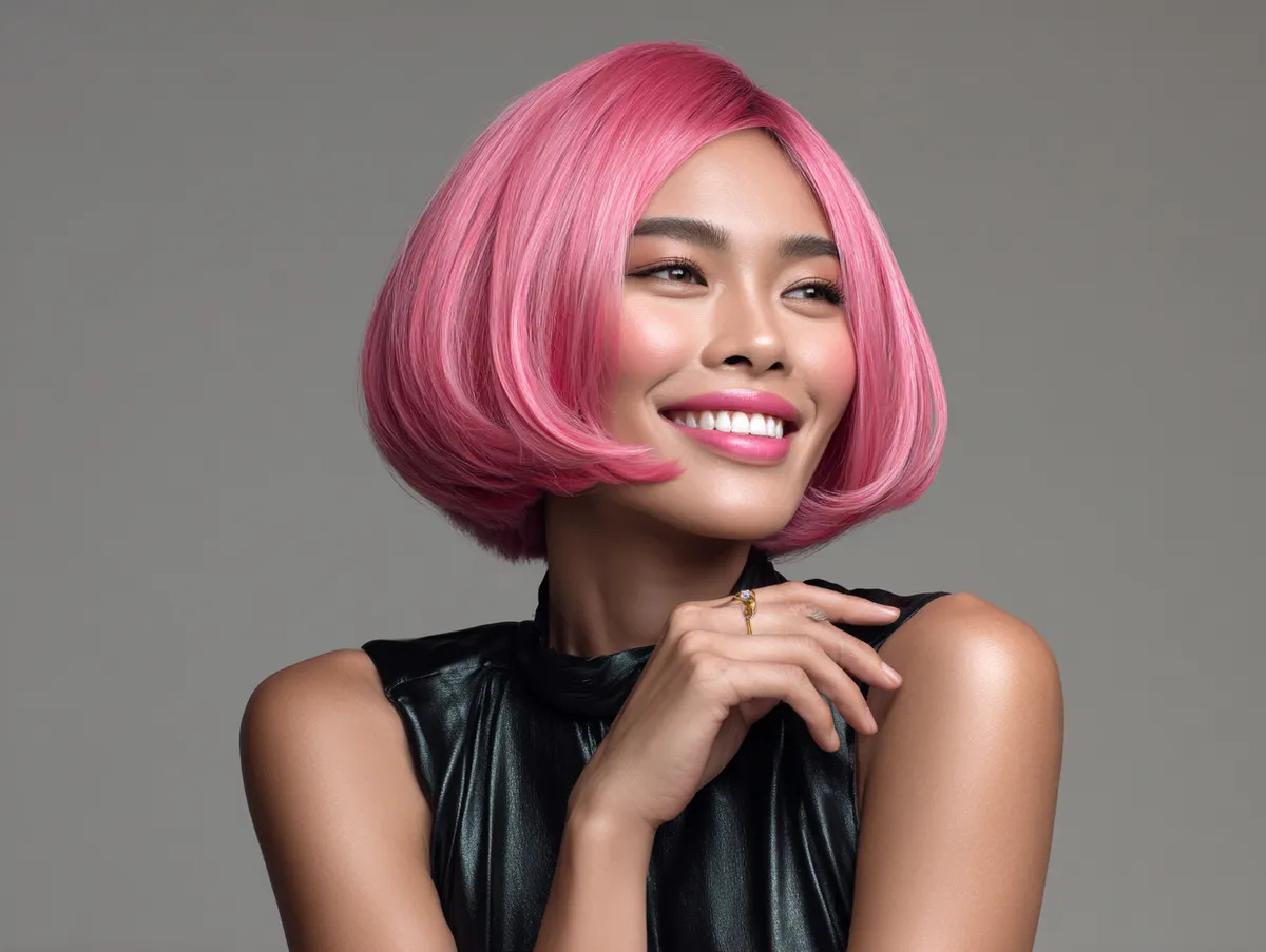 Styling this look is refreshingly simple. A quick blow-dry or a flat iron pass is enough to keep the bob smooth, while a dab of serum enhances the glow. Short Asian hairstyles like this work beautifully in both casual and professional settings. Pink adds personality without compromising elegance, which makes it versatile for everything from coffee outings to corporate meetings.