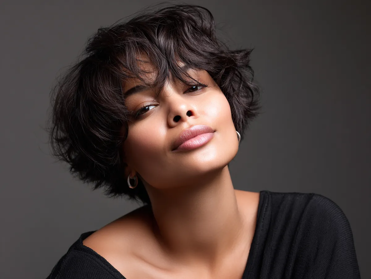 Short hair can be unexpectedly flattering for fuller facial shapes when structured with intention. The short layered hairstyle for round chubby face confidence is designed to introduce vertical motion, lift, and texture while keeping the overall shape light and energetic. Rather than hiding roundness, it celebrates it with sophistication and boldness.