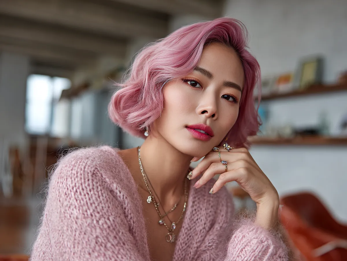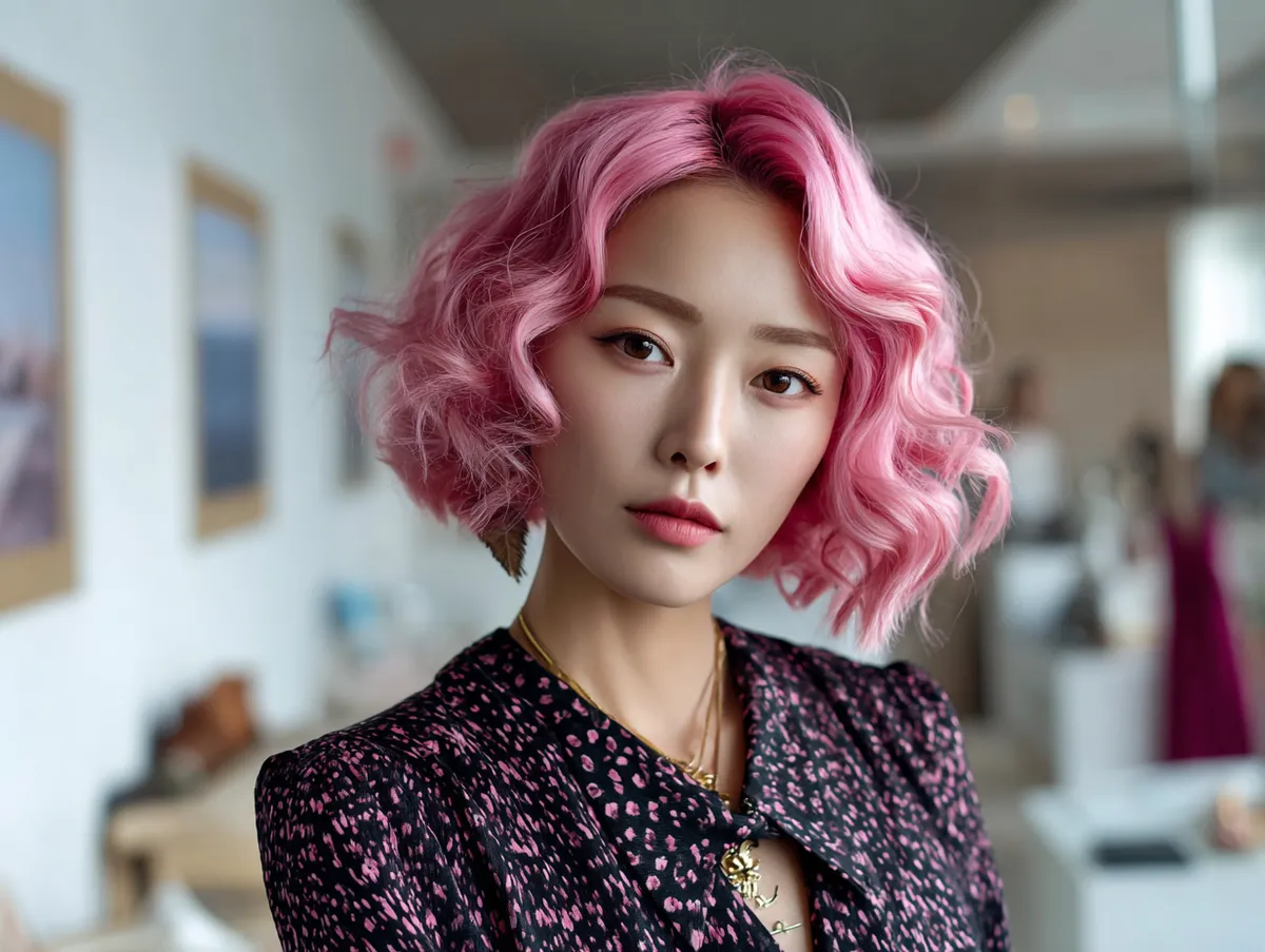 Maintaining this look is surprisingly straightforward. The waves naturally hold shape, and the shorter cut makes them easier to manage. The pink tone requires care to stay bright, but because of the reduced length, refreshing it is less demanding. This makes the Korean short hairstyle not only fashionable but also practical for everyday life.