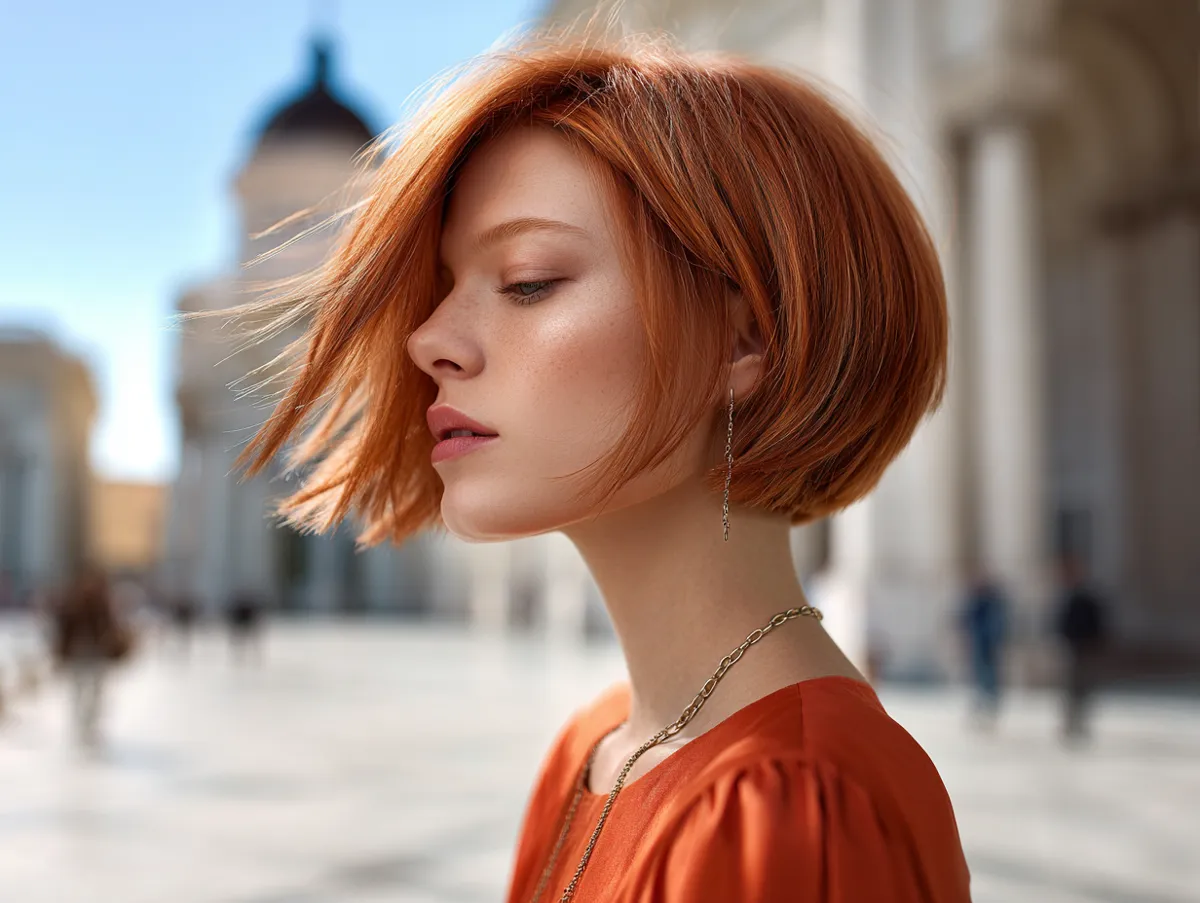 Color intensifies the transformation. Golden peach, with its warm pink-orange glow, reflects beautifully in daylight. When sunlight hits the angled surface, the shimmering pigment exaggerates the diagonal flow, emphasizing the elongated effect. Women with fair or warm skin tones love the softness of this shade. Even those with cooler undertones can wear it if the stylist adds faint neutral undertones. The shade is playful, bright, and surprisingly refined.