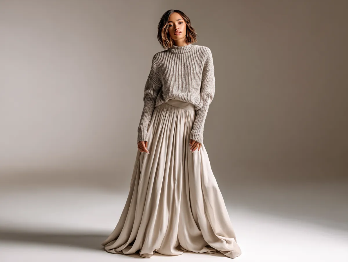 Maxi Skirt Outfit Ideas with a Cozy Knit Sweater