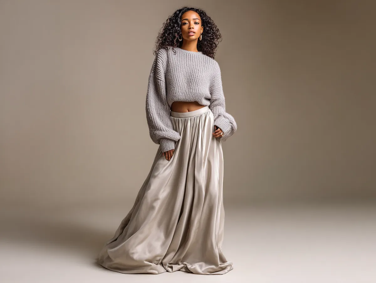 For those exploring new maxi skirt outfit ideas, texture contrast adds visual interest. A ribbed sweater paired with a satin skirt creates a play of matte and shine, while a mohair knit with a cotton skirt exudes rustic charm. Layering can also bring character—a long coat or a scarf amplifies coziness without overwhelming the shape.