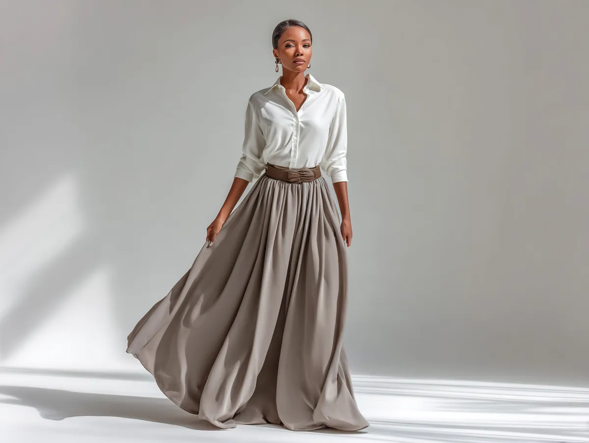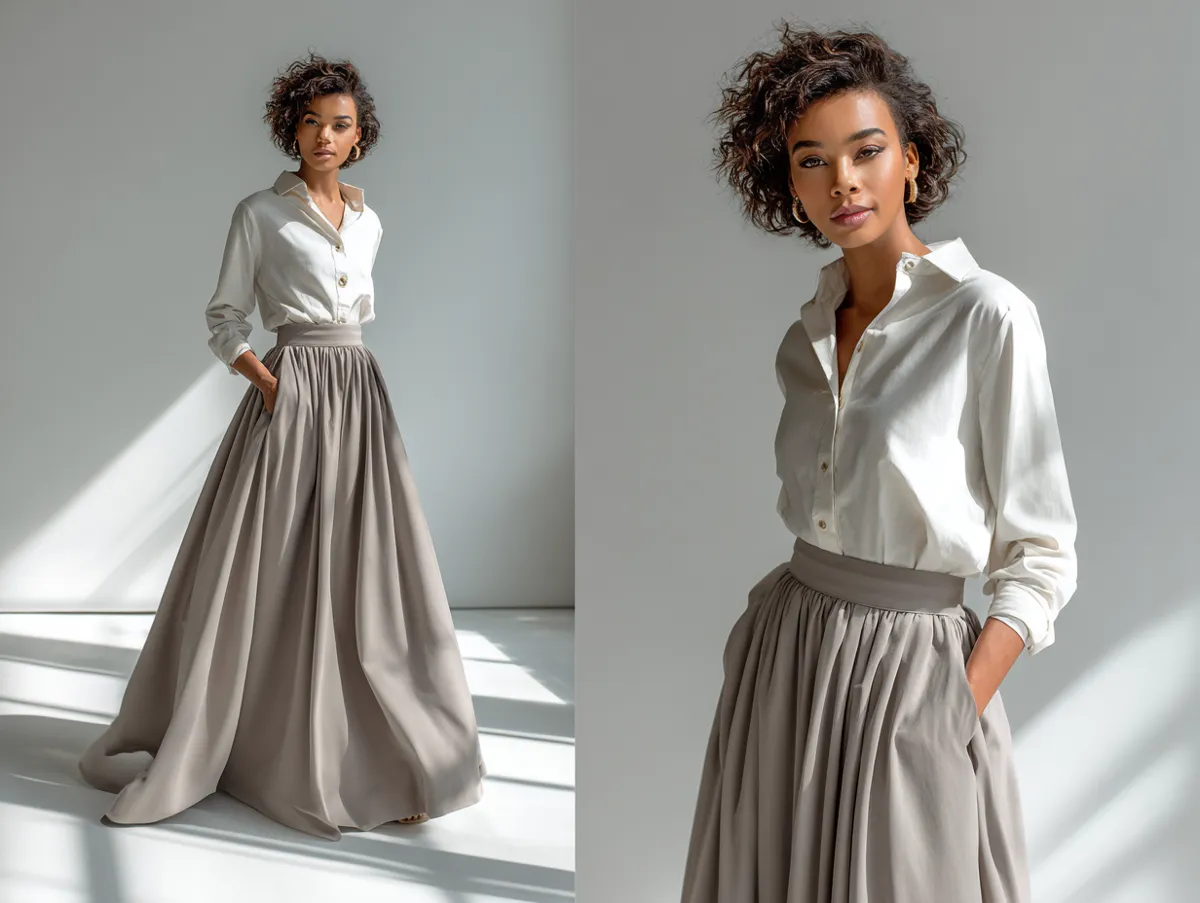 For those seeking versatile maxi skirt outfit ideas, this pairing offers endless potential. Imagine a crisp white shirt tucked into a floral maxi skirt for a soft romantic mood. Alternatively, a tailored shirt paired with a satin skirt delivers a luxurious, editorial look. The play between masculine tailoring and feminine flow always results in captivating contrast.
