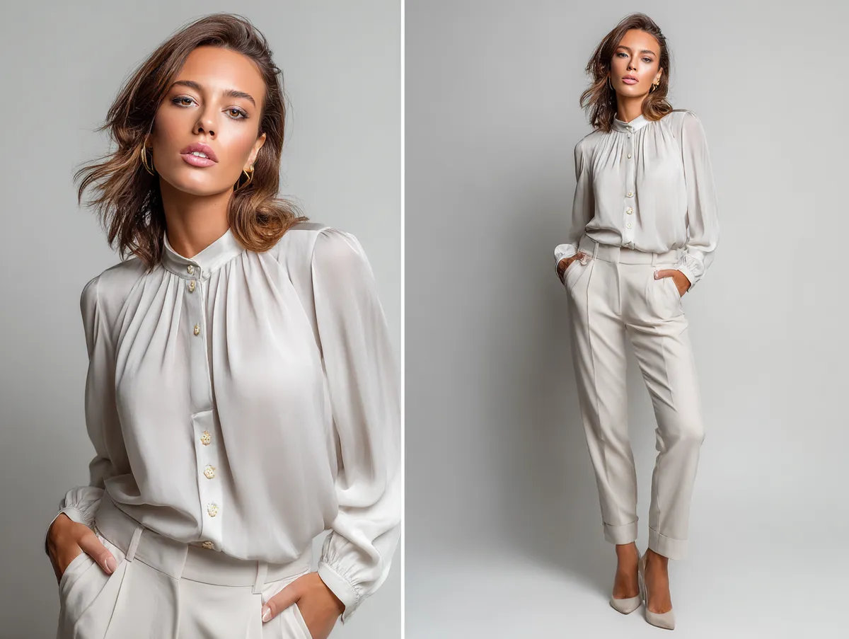 Seasonal transitions also showcase the flexibility of this style. In warmer months, lightweight silk shirts worn with ankle-length trousers and sandals provide breezy sophistication. As temperatures cool, layering a tailored blazer over silk adds structure and warmth, extending the life of the outfit throughout the year. Trouser outfit ideas that embrace silk demonstrate how one simple top can completely shift the mood of trousers.
